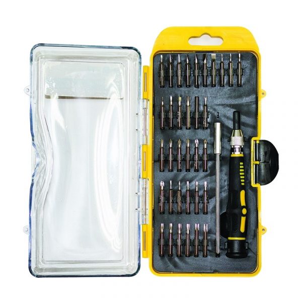 Применяется в качестве сменных насадок в ручном и электрическом инструменте. Магнитный шлиц. Хромованадиевая сталь повышенной твердости. Комплектация: отвертка 105 мм, удлинитель отвертки 115 мм, крестовой шлиц Phillips (PH-000, PH-00, PH-0, PH-1, PH-1), крестовой шлиц Pozi driv (PZ-0, PZ-1, PZ-1), плоский шлиц (SL-1, SL-1.5, SL-2, SL-2.5, SL-3, SL-3.5, SL-4 ), шестигранный шлиц (HX-0.7, HX-0.9, HX-1.3, HX-1.5, HX-2, HX-2.5, HX-3, HX-4), Torx шлиц (TX-4, TX-5, TX-6, TX-7, TX-8, TX-9, TX-10, TX-15, TX-15, TX-20, TX-20).